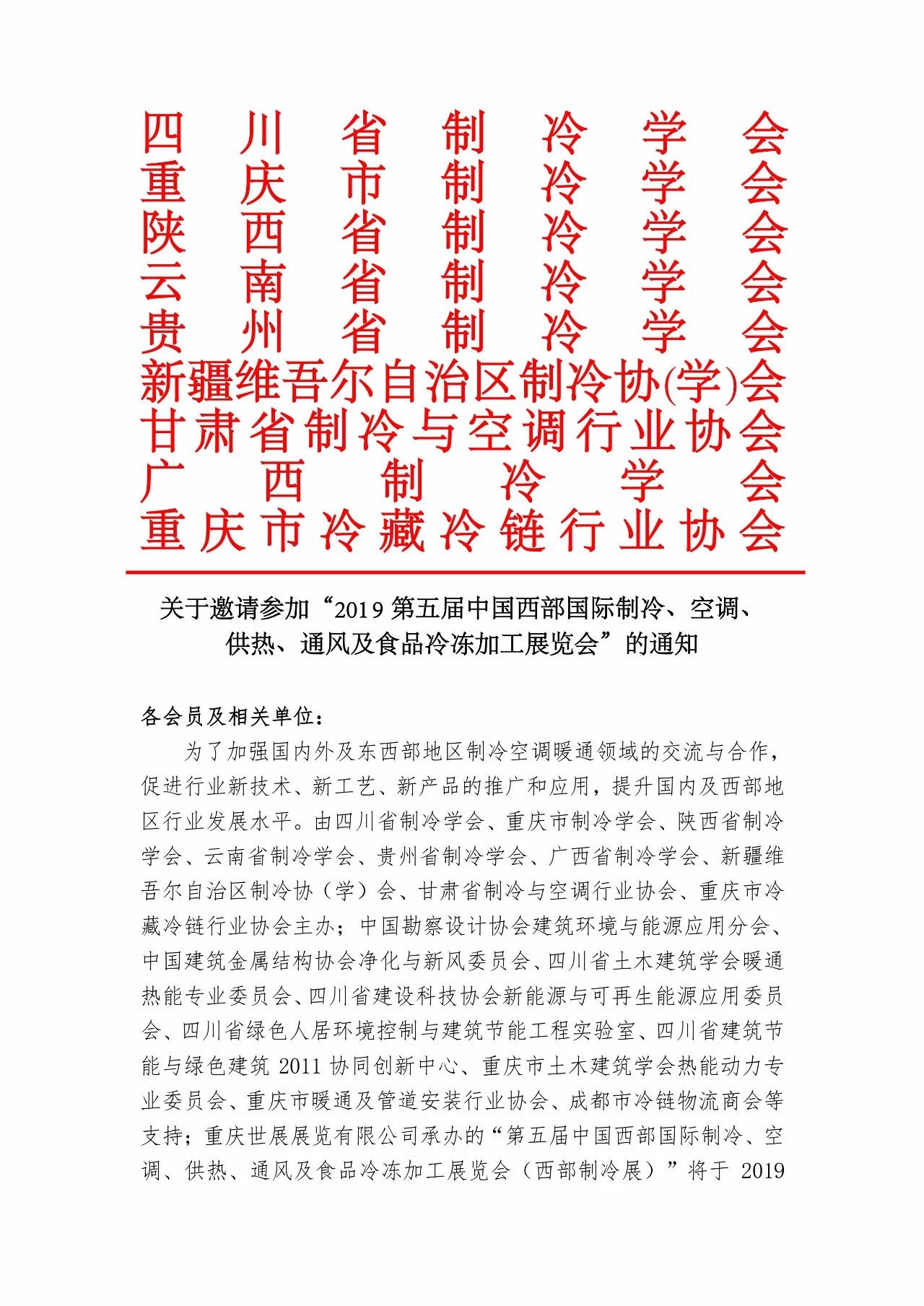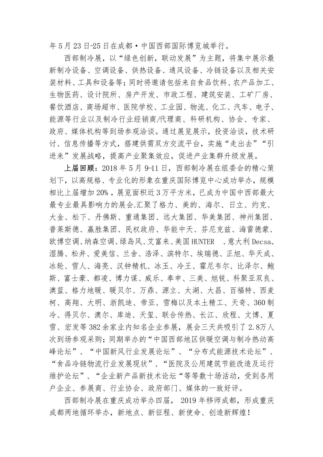 【邀請函·成都】2019第五屆中國西部國際制冷、空調、 供熱、通風及食品冷凍加工展覽會