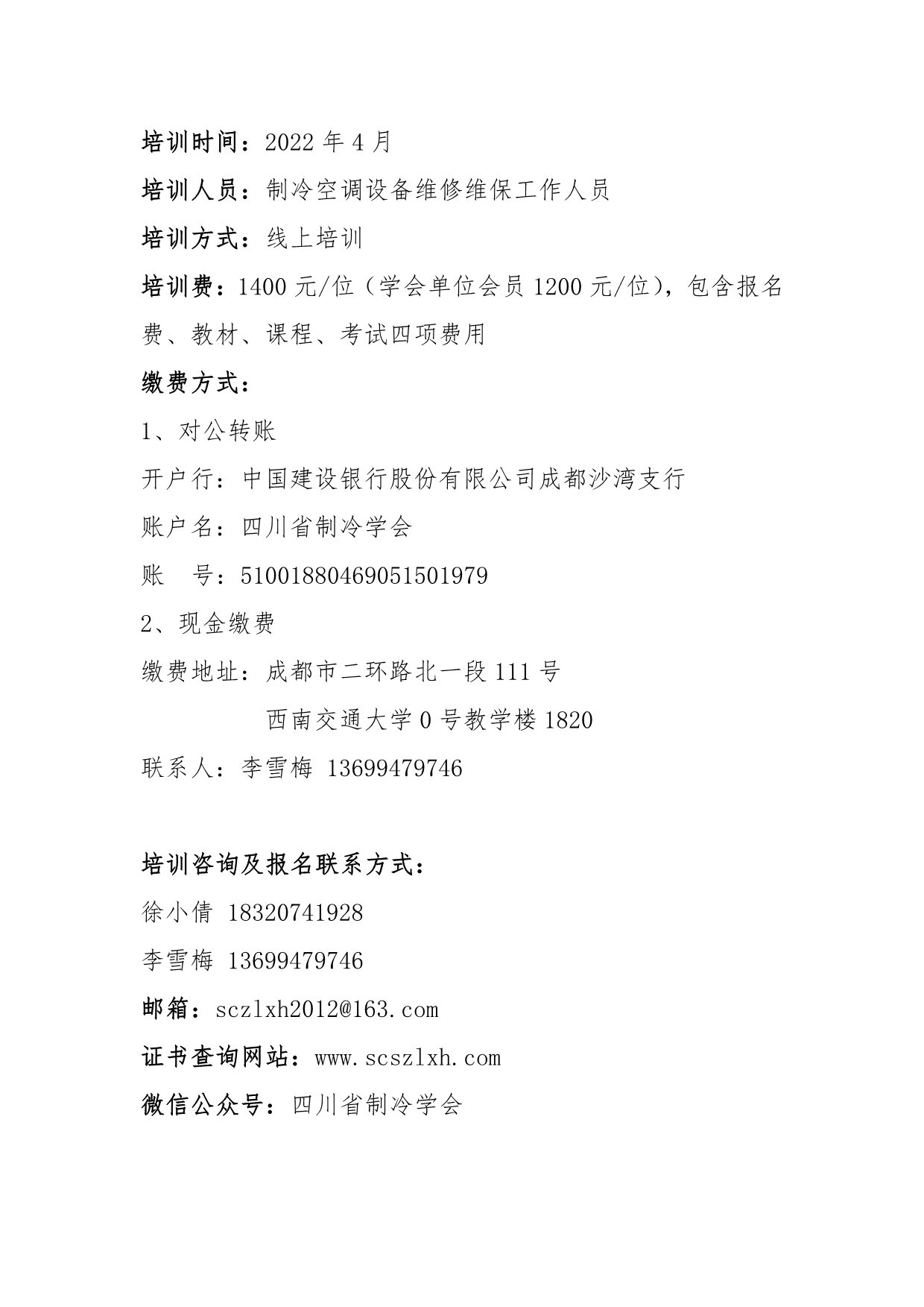 關于舉辦“第七期四川省中央空調維修維保技術人員培訓”的通知