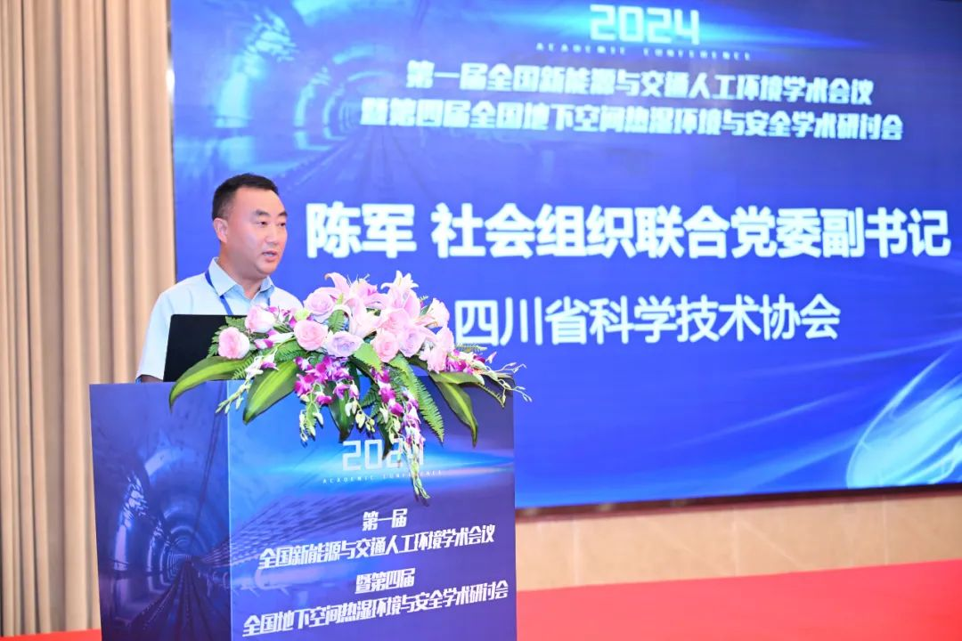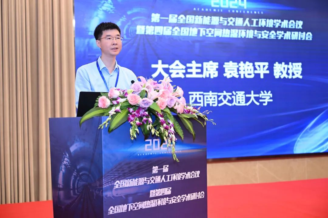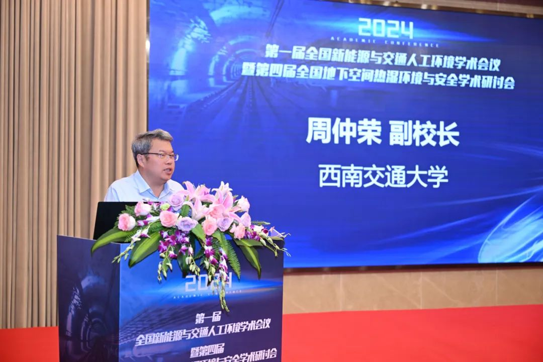 會議開幕式由四川省制冷學會秘書長、西南交通大學余南陽教授主持。開幕式上,西南交通大學副校長周仲榮教授與四川省科學技術協會社會組織聯合黨委副書記陳軍先生分別致開幕詞,并向與會的專家學者表達了熱烈的歡迎與誠摯的感謝;大會主席西南交通大學長江學者特聘教授袁艷平教授講述了從2014年到2024年10年來四屆全國地下空間熱濕環境與安全學術研討會的發展歷程和第一屆全國新能源與交通人工環境學術會議的開端,同時介紹了本次會議的籌備情況,并對出席本次會議的專家學者,支持本次會議的企事業單位和媒體及組委會成員們表示了衷心的感謝。