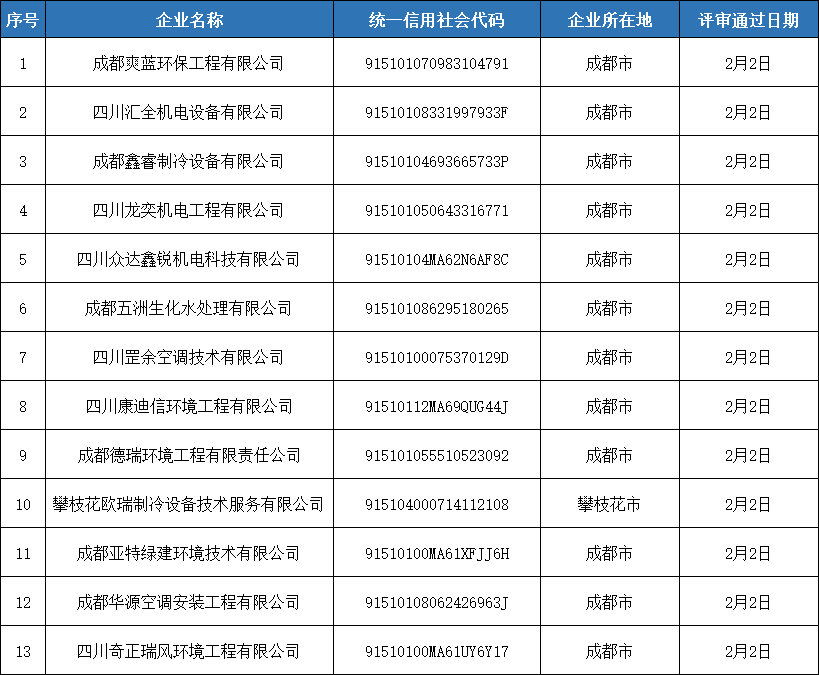我會(huì)對(duì)第三批四川省制冷空調(diào)維修維保資格證書的申報(bào)材料組織了專家審查,現(xiàn)將符合專家審查意見的企業(yè)名單在四川省制冷學(xué)會(huì)門戶網(wǎng)站(http://m.yxjjsc.cn/)予以公示,以廣泛接受社會(huì)監(jiān)督。公示截止日期為2021年2月5日。
