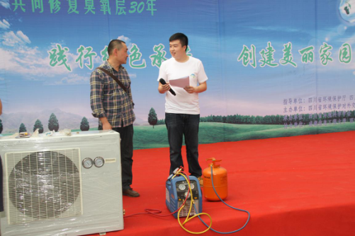 為響應中國制冷學會和省科協(xié)2015年四川省全國科普日活動的號召,同時結合宣傳國務院頒布的《消耗臭氧層物質管理條例》,切實履行我國簽署加入的《保護臭氧層維也納公約》和《關于消耗臭氧層物質的蒙特利爾議定書》規(guī)定的義務,落實《中國逐步淘汰消耗臭氧層物質國家方案》,加強制冷行業(yè)對消耗臭氧層物質的管理,保護臭氧層和生態(tài)環(huán)境,保障人類健康,在四川省環(huán)境保護廳的指導下,我會協(xié)同四川省環(huán)境保護對外交流合作中心和四川省環(huán)境科學學會共同主辦了2015年“9.16國際保護臭氧層日”宣傳周大型科普活動。