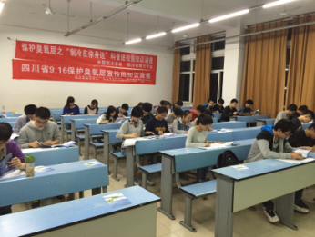 本次活動我們聯(lián)合省內高校,共舉辦了13場具有針對性的ODS知識講座,同時結合講座開展了“2015年四川省大學生保護臭氧層有獎知識競賽”。主辦方賽前提供《保護臭氧層知識宣傳冊》《制冷與健康》科普讀物,來自四川大學、電子科技大學、西南交通大學、成都信息工程大學等13所省內高校的450余名學生參加了此次競賽。通過知識競賽,旨在號召大學生提高保護臭氧層意識,激發(fā)青年學生的環(huán)保熱情,樹立綠色生活理念和消費觀念,共同營造綠色文化。