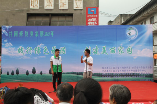 在四川省環(huán)境保護廳和四川省科學技術協(xié)會領導的正確指導下,四川省環(huán)境保護對外交流合作中心、四川省環(huán)境科學學會、四川省制冷學會、成都信息工程大學和西南交通大學相關領導和工作人員共同協(xié)作、積極配合,通過開展“知識講座、知識競賽、制冷設備舊貨市場大型環(huán)保公益宣傳”系列活動,向廣大市民普及了保護臭氧層、制冷與健康、如何處理廢舊空調和冰箱等相關知識,提高公眾的環(huán)保意識,樹立綠色消費及低碳生活的理念,號召了廣大市民“踐行綠色承諾、倡導綠色環(huán)保、創(chuàng)建美麗家園”,2015年四川省“9.16國際保護臭氧層日”宣傳周活動取得了圓滿成功。